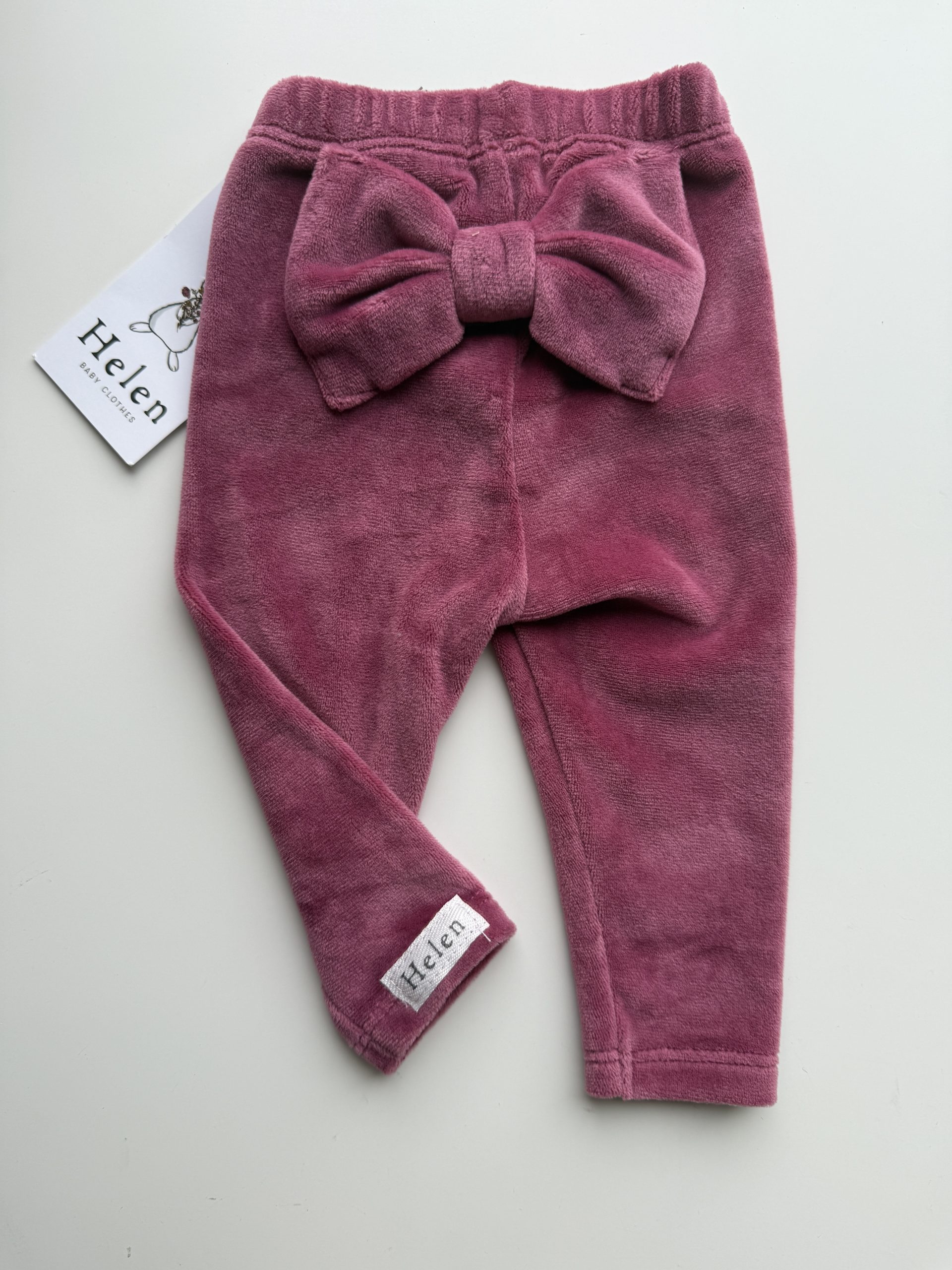 Legginsy welurowe z kokardą na pupie i logowaniem marki na lewej nogawce z przodu.